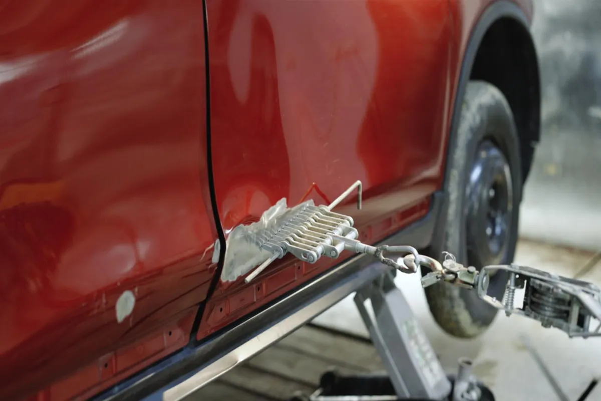 Small dents caused by hail or minor collisions can often be fixed with a plunger. Make sure the area is clean and wet, then place the plunger over the dent and push and pull to create suction. The suction should pop the dent back into place.